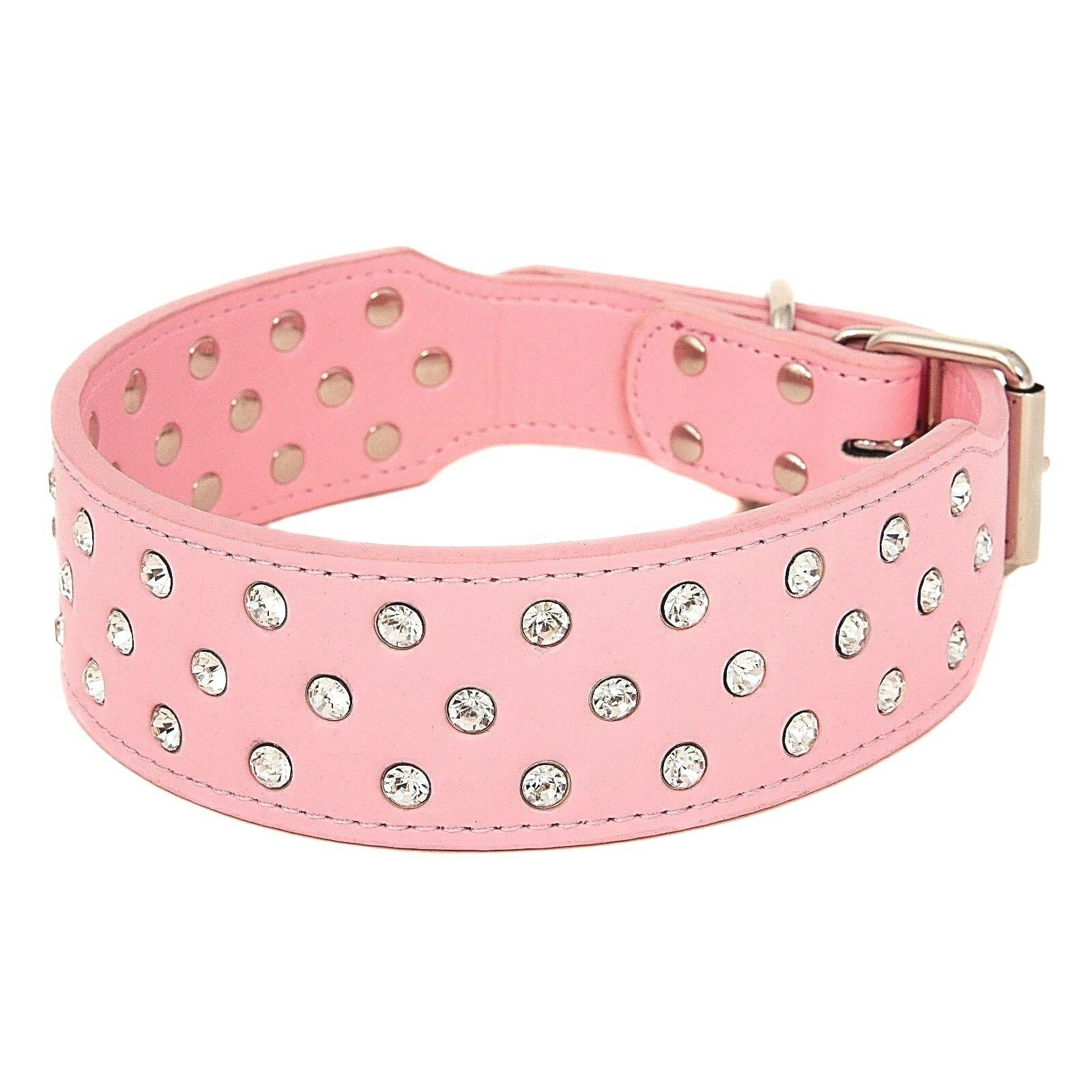Rhinestone Diamond Bling PU Faux Leather Dog Pet Collar Adjustable Crystal Diamante 2" Wide S M L XL Large Dogs